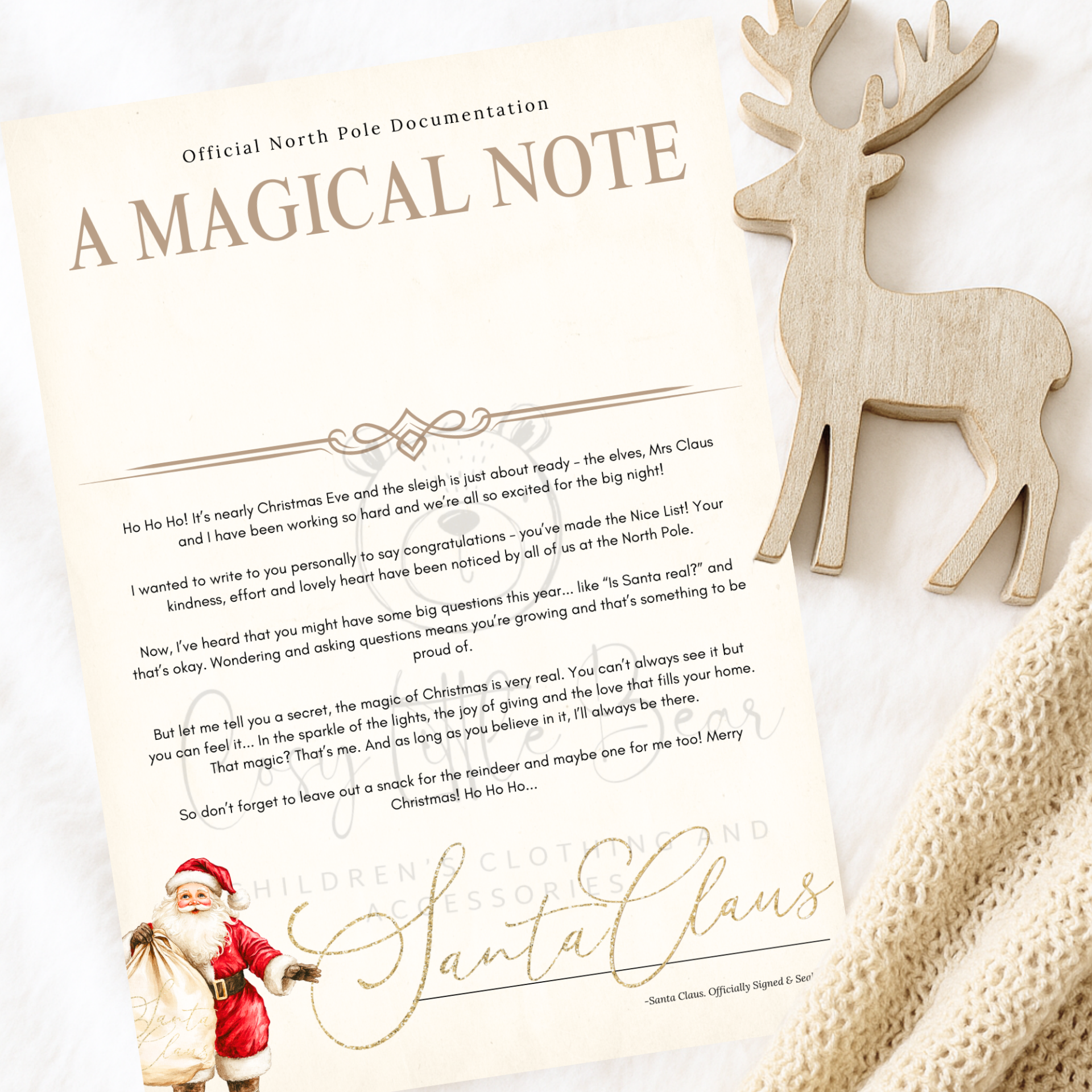 Printed on satin silk 320 gsm card, these A4 personalised letters are perfect to add to your little one's Christmas Eve box or to give before the special day (envelope not included).